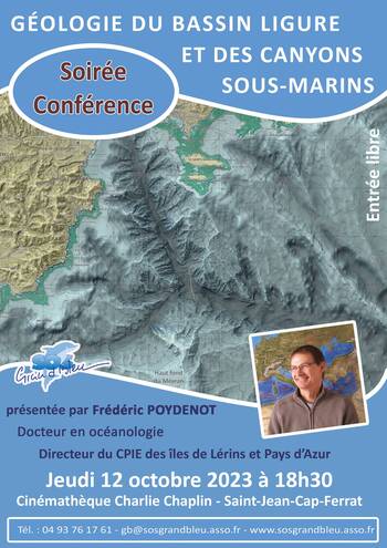 SOS Grand Bleu vous propose une nouvelle conférence-diaporama intitulée : « Géologie du bassin ligure et des canyons sous-marins », présentée par Frédéric Poydenot, Docteur en océanologie et Directeur du CPIE des îles de Lérins et Pays d'Azur.
