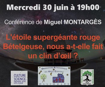 Conférence "L'étoile supergéante rouge Bételgeuse, nous a-t-elle fait un clin d’œil ?"
