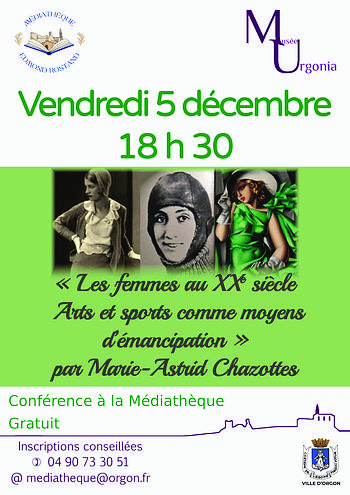 - « Les femmes du 20e siècle, Arts et sports comme moyens d’émancipation » par Marie-Astrid Chazottes (Co-responsable du musée Urgonia), à la Médiathèque d’Orgon (Gratuit, réservation conseillée) Au début du 20e siècle (et même avant), les productions artistiques de personnes aisées ou de personnes ayant grimpé les échelons sociaux avec dignité, force et talent sont les témoignages de cette volonté de faire avancer le statut de la femme. Ce féminisme transparaît dans plusieurs pans de la société ou types de productions artistiques. Evidemment certains espaces sont encore complètement ou quasiment hermétiques à la femme : droit de vote et d’éligibilité, droit au travail sans consentement, interdiction d’ouvrir un compte bancaire à son nom. Durant cette conférence, je vous propose de partir à la découverte des personnes ayant marqué la première moitié du 20e siècle en faisant à leur manière avancer les droits de la femme.