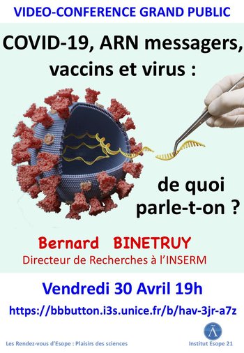Le thème abordé lors de la conférence sera la biologie moléculaire des virus, notamment le virus SARS-CoV-2. Les outils de génie génétique ont énormément progressé depuis les débuts de la biologie moléculaire moderne, dans les années 60 ; permettant une analyse quasiment instantanée des virus responsables des épidémies récentes. Toutefois, l’émergence de la pandémie COVID-19 due au virus SARS-CoV-2 a surpris par sa sévérité, a posé de nouveaux problèmes débordant largement du cadre strictement scientifique et a provoqué une accélération sans précédent de la recherche, notamment dans le développement de vaccins. Au cours de cette conférence Bernard Binetruy décrira la structure et la génétique des principaux virus pathogènes pour l’homme et comment les chercheurs ont développé de nouvelles stratégies vaccinales.