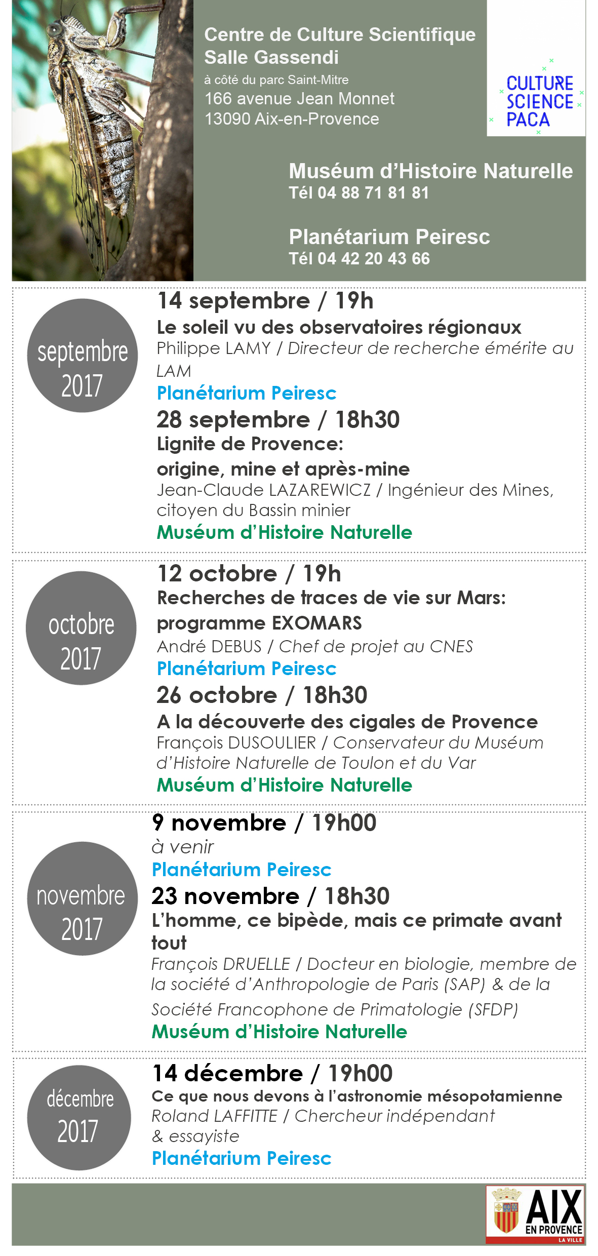 Cycle de conférence - automne 2017 - Muséum d'Histoire Naturelle - Planétarium
