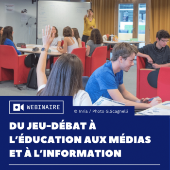 Ce webinaire retracera le parcours des ressources pédagogiques proposées en complémentarité de Jouer à débattre, de sa conception à sa prise en main par les animateur·ices. Après une brève présentation de ce jeu et des spécificités de sa conception, deux actrices témoigneront autour des questions de l’identification, de la sélection, de l’indexation et du partage des ressources Jouer à débattre. Les participant·es, possible utilisateur·ices, seront également également invité·es à faire un retour d’expérience sur leur utilisation des ressources.