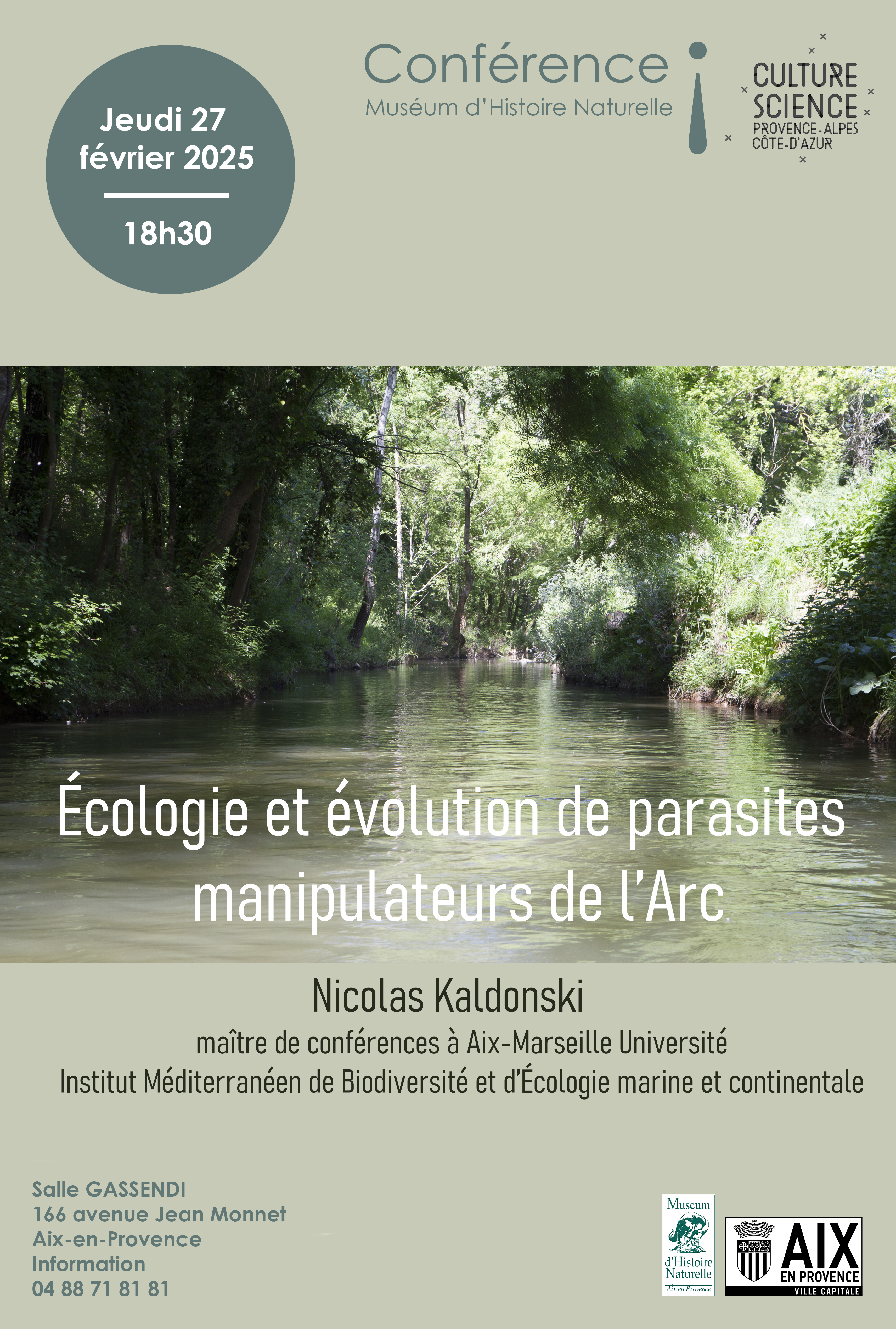 Cette conférence explorera, sous différents aspects généraux, théoriques et appliqués et dans un contexte méditerranéen, les effets écologiques de certains groupes de parasites liés aux milieux aquatiques. Nous verrons quelques aspects originaux liés à leur biologie et à leur vie en étroite relation avec les poissons et les crustacés de l’Arc et de ses affluents. Une plongée fascinante dans un monde presque invisible mais crucial pour l'équilibre de nos cours d'eau.