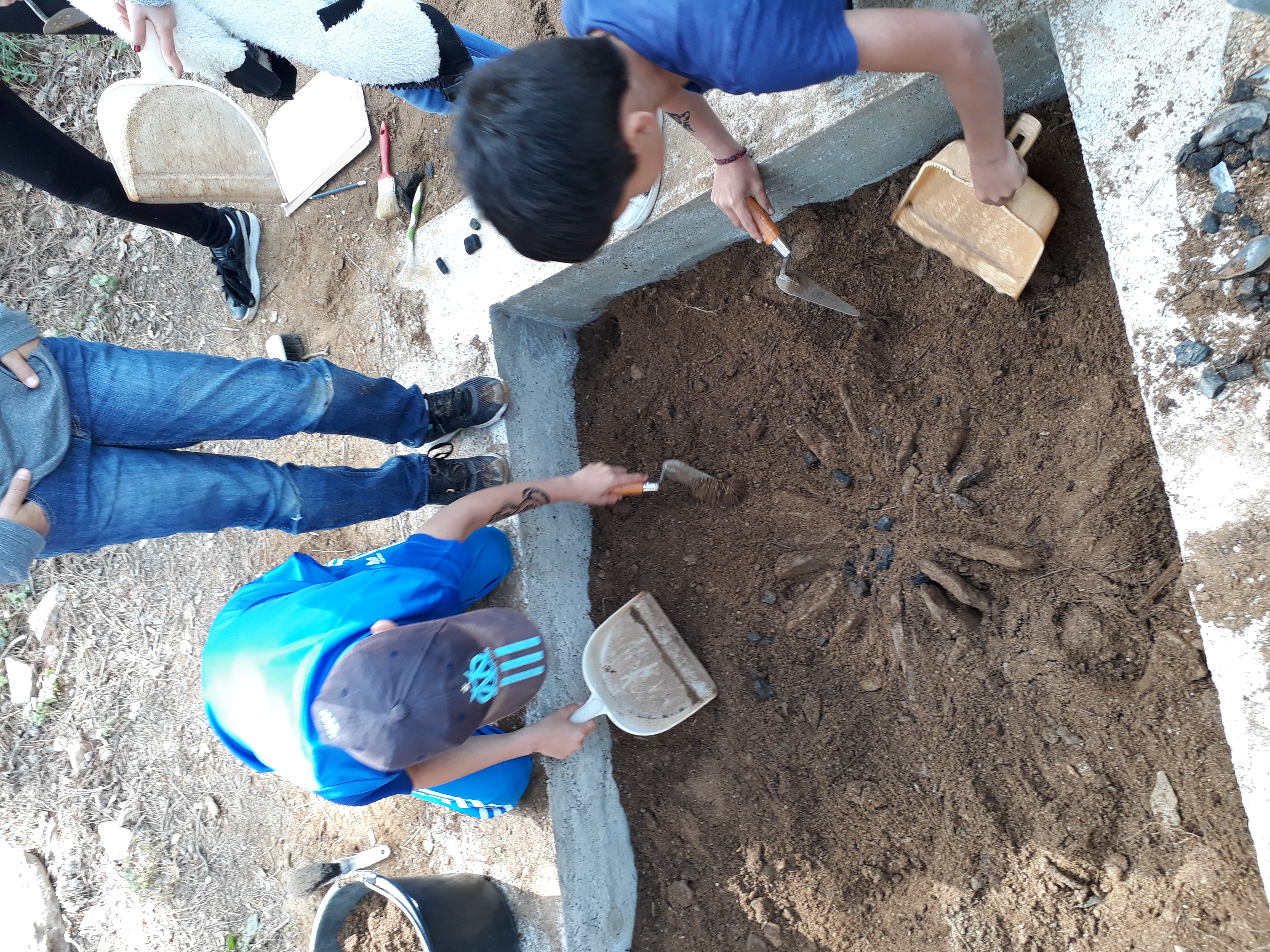 Au cours de ce chantier miniature, munis de truelle, balayette, seau et pinceau, vous mettrez au jour des vestiges du passé : des pierres, des fragments de céramique, des dalles, du charbon, etc. Le matériel dégagé sera ainsi identifié à l'aide de photos et de croquis.