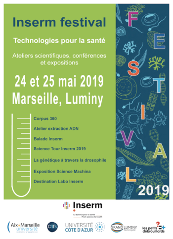 Le 24 et 25 mai 2019, l'Institut national de la santé et de la recherche médicale (Inserm) en partenariat avec Aix-Marseille Université, le CNRS, l’association Les Petits Débrouillards et l’association Grand Luminy Technôpole, invitent des élèves de collèges et lycées de plusieurs établissements de Marseille, les étudiants d’Aix-Marseille Université et le grand public à vivre la science durant deux journées qui leurs seront consacrées sur le campus de Luminy. Expositions, ateliers autour de jeux et de quizz, échanges et discussions approfondis avec les chercheurs et les professionnels de santé permettront aux grands comme aux petits, de mieux comprendre la science et ses questionnements. Pour découvrir le monde de la recherche rien de tel que de pouvoir rencontrer ceux qui chaque jour posent des hypothèses et réfléchissent aux découvertes de demain.