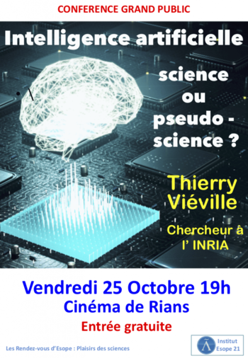 Thierry Viéville, chercheur à l’INRIA, nous parlera d’ Intelligence artificielle : science ou pseudo-science.