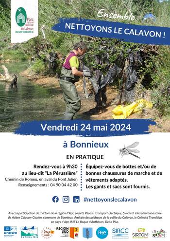 Le Parc naturel régional du Luberon et ses partenaires organisent une nouvelle journée de sensibilisation à la gestion des déchets, avec une opération de nettoyage de la rivière Calavon-Coulon à Bonnieux, dans le secteur du Pont Julien.