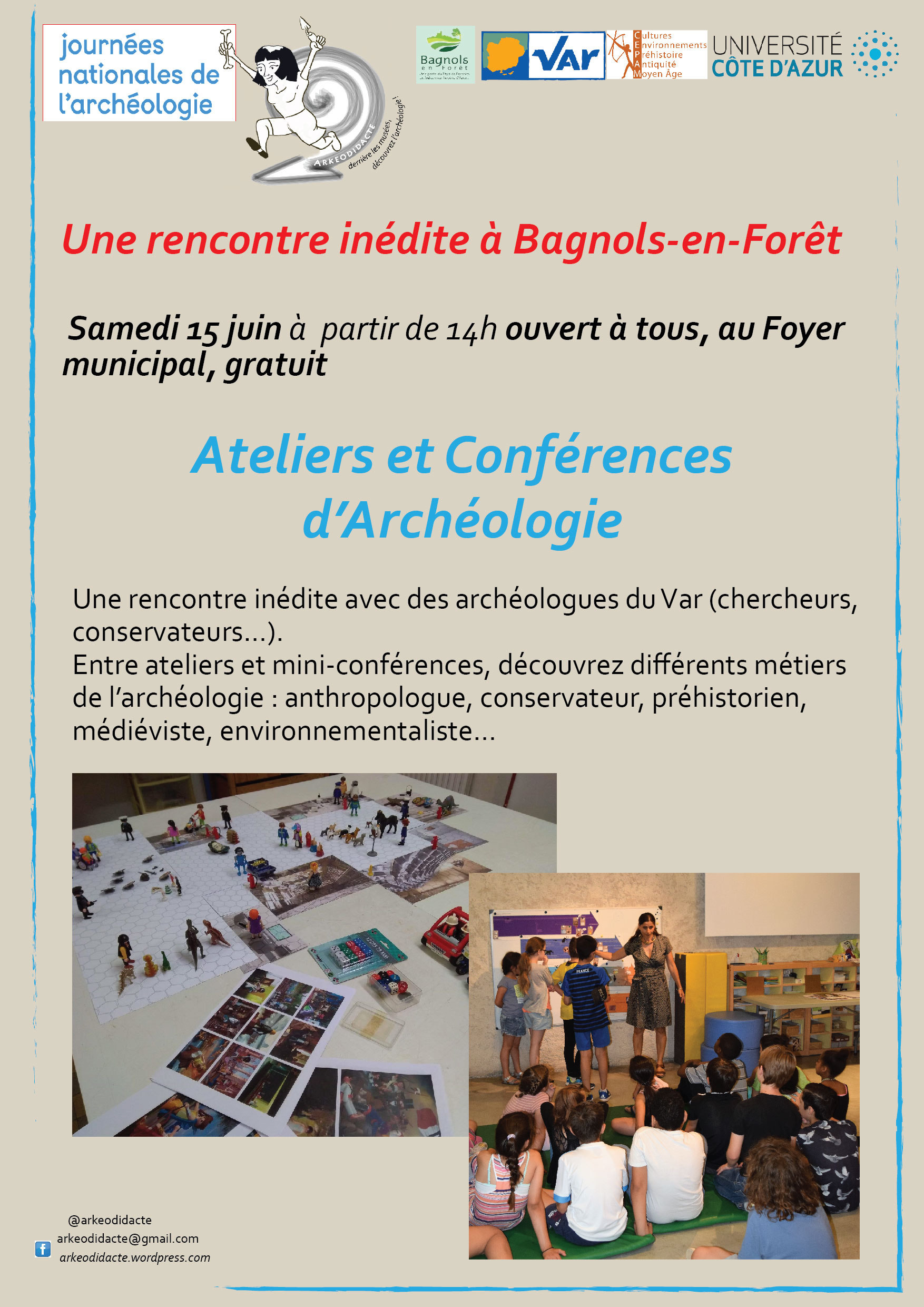 Samedi 15 juin 2019, à partir de 14h, au foyer municipal de Bagnols-en-Forêt, pour les journées nationales de l’archéologie 2019, Arkéodidacte vous propose une journée inédite de rencontres avec des professionnels de l’archéologie intervenant dans le Var.