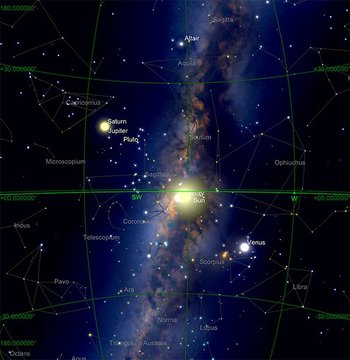 Le 21 décembre 2020 aura lieu un rapprochement remarquable des planètes Jupiter et Saturne, bien visible à l’œil nu en début de soirée, aux toutes premières heures de la nuit. La distance sur le ciel entre les deux planètes sera environ 20% de la taille de la pleine Lune, à tel point qu'il sera difficile de distinguer les deux astres sans l'aide de jumelles. Il s'agit d'un alignement sur la sphère céleste, dans la réalité Saturne se trouve environ 700 millions de kilomètres plus éloignée que Jupiter.