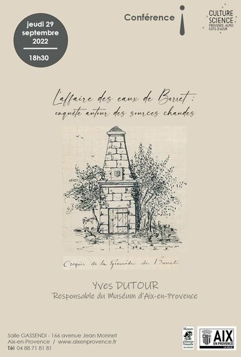 Les eaux thermales du centre-ville d’Aix-en-Provence sont connues depuis les romains, mais il en existe d’autres dans le quartier Barret le long de la Torse. Quasiment oubliées aujourd’hui, ces sources ont fait l’objet, au début du XVIIIème siècle, de nombreux conflits entre la ville et des propriétaires privés pour la possession et l’usage de ces eaux. A cette occasion, des hypothèses ont été émises sur l’origine des eaux chaudes d’Aix-en-Provence que nous confronterons aux données actuelles.