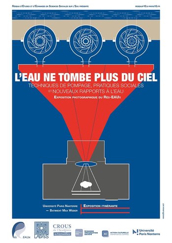Que ce soit le puits pastoral au Niger, ou le groupe de pompes individuelles dans le delta du Nil en Egypte, ou encore les techniques de forage et de pompage propres aux habitants de l'Inde du Sud, cette exposition photographique montre des objets techniques permettant d'accéder à l'eau. Face à ces installations repérables dans le paysage, on s'interroge sur le réseau d'acteurs qu'elles mobilisent. Qui les utilise, les conçoit, les adapte à la réalité locale, les diffuse ?