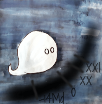 Illustration : dessin issu du concours 'Draw me a neutrino' , organisé par la Collaboration KM3NeT, remporté par un indien Aadishri Kher en 2021