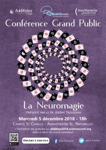 Le 5 décembre 2018, une conférence sera proposée en français à toute la population marseillaise sur le campus de St Charles à 18h. Présentée par le Pr. Jérôme Trouslard de l'université d'Aix-Marseille, cette conférence abordera le thème de la Neuromagie.