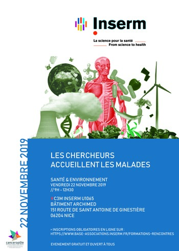 Vendredi 22 novembre 2019 de 9h à 12h30 au C3M Inserm U1065, bâtiment Archimed,151 route de Saint Antoine de Ginestière, 06204 Nice Accès PMR > Attention problème de parking après 9h, privilégier le bus ligne 6A, arrêt Archet 2