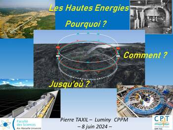 Si vous n'avez pas pu assister à la conférence grand public de Pierre Taxil au sujet de : "Les hautes énergies : pourquoi ?, comment ?, jusqu'où ?", effectuée le 8 juin sur le campus de Luminy à la Faculté des sciences, dans le cadre du cycle de conférences du CPPM "Mystères au cœur de l'Univers et de la matière", acccédez à la présentation via l'adresse internet indiquée ci-après : https://indico.in2p3.fr/event/...
