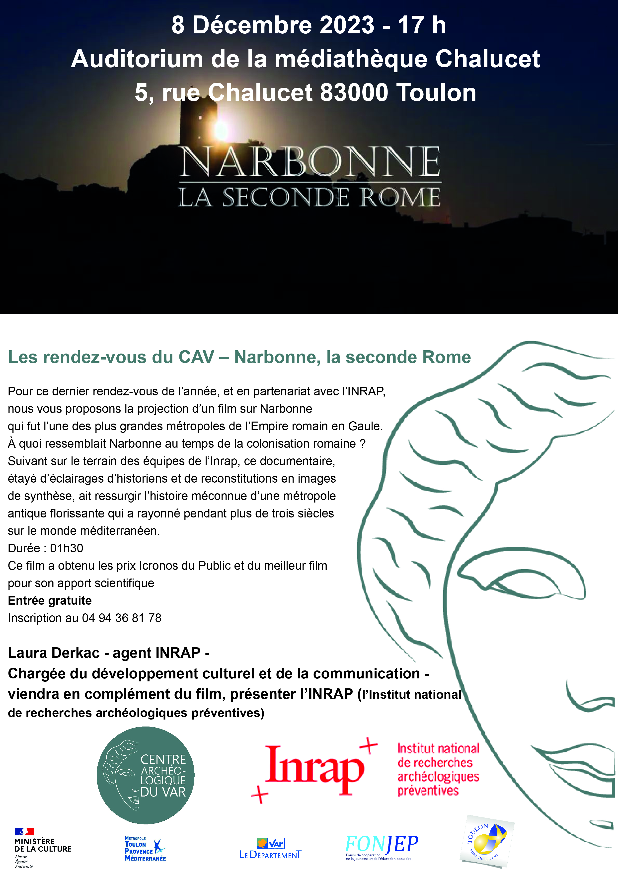 En complément de la projection, Laura Derkac, chargée du développement culturel et de la communication - viendra en complément du film, présenter l’INRAP (l’Institut national de recherches archéologiques préventives).