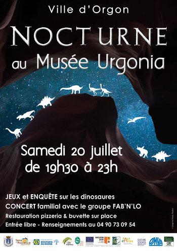 Le soir du 20 juillet 2019, rendez-vous pour la 4ème Nocturne estivale du Musée Urgonia ! Cet été, révisez vos connaissances sur les dinosaures, car ils vous attendent dans le musée pour de nouveaux jeux. Venez profiter de la soirée avec un concert familial du groupe Fab'n'Lo en extérieur (oui parce qu'à l'intérieur, les rugissements de dinosaures ne permettent pas d'y faire un concert 😉). Et c'est toujours gratuit !