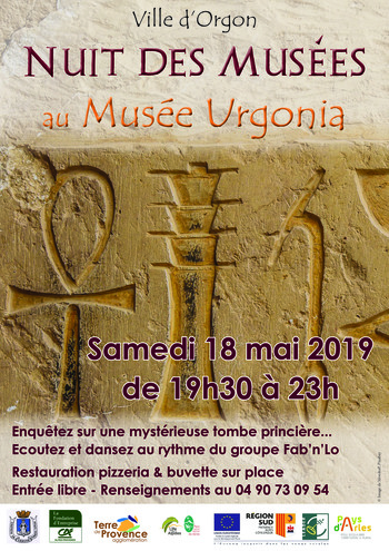 Le samedi 18 mai, le Musée Urgonia participera à la Nuit des Musées. A cette occasion, les collections seront exceptionnellement accessibles en soirée, de 19h30 à 23h. Les enfants (et les adultes !) pourront enquêter sur la découverte d'une mystérieuse tombe égyptienne et découvrir les secrets du défunt... avec toujours une récompense à la clé pour ces petits archéologues en herbe !