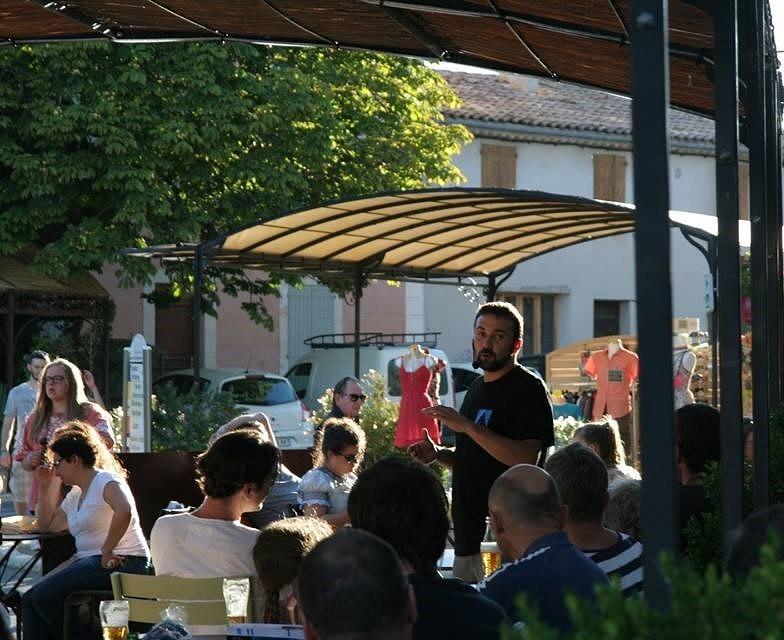 A l’heure de l’apéro, les terrasses de café du village de Saint-Michel-l’Observatoire se remplissent, et les discussions s’animent autour de trois thèmes scientifiques expliqués par les animateurs/médiateurs scientifiques du Centre d’Astronomie.