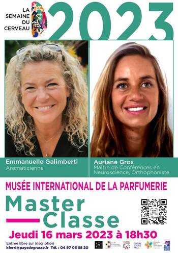 Master classe pendant la semaine du cerveau  : Neuroscience et Arôme - Rencontre entre Emmanuelle Galimberti, aromaticienne et Auriane Gros, MCF- HDR en Neurosciences Faculté de Médecine/ Laboratoire CoBTeK