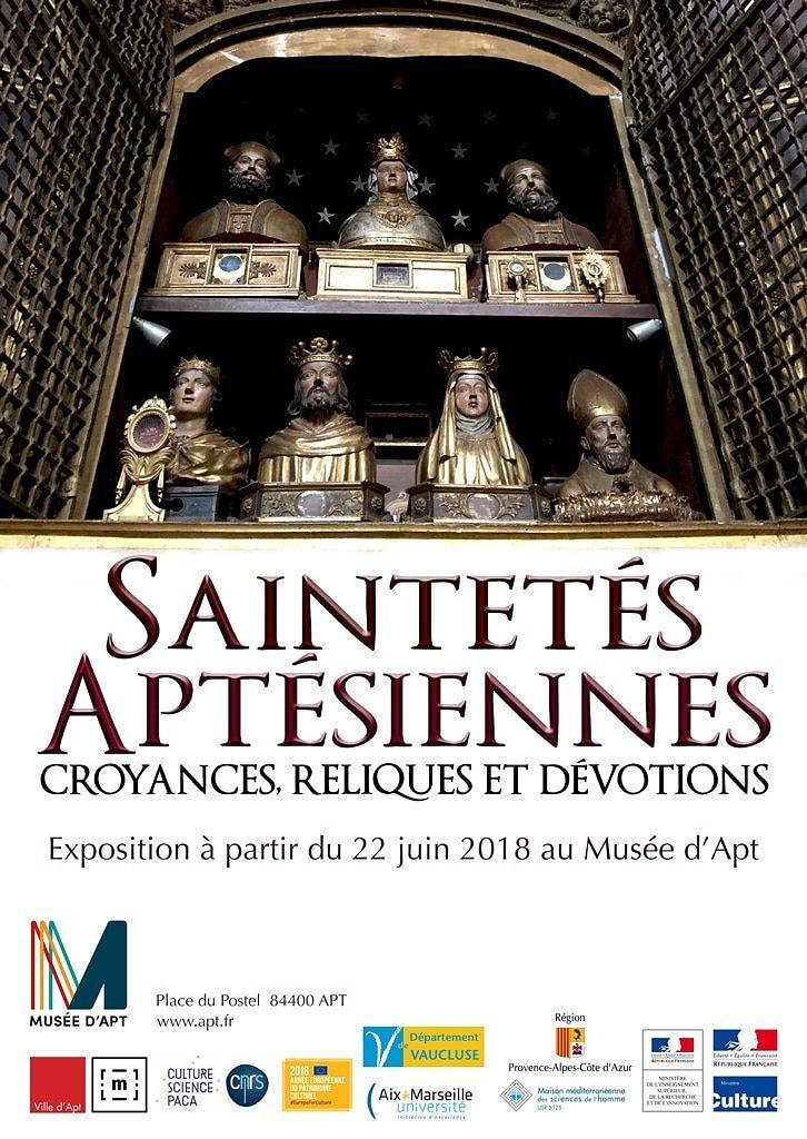 A travers la présentation des principaux saints aptésiens (Auspice, Castor, Martian, Anne, Elzéar et Delphine), l'exposition vous invite à découvrir différents aspects de la vie quotidienne en pays d'Apt, de l'antiquité à nos jours, ainsi que les croyances et traditions populaires qui perdurent à travers les siècles.