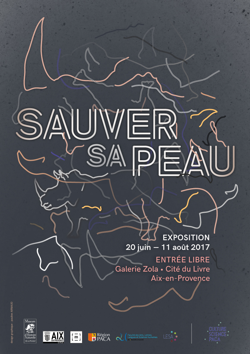 L’exposition Sauver sa peau résulte d’un événement singulier : la naturalisation d’un rhinocéros blanc d’Afrique nommé Henk qui a vécu au zoo de La Barben. Le Muséum d’Histoire Naturelle d’Aix-en-Provence et l’université d’Aix-Marseille proposent ainsi une exposition arts/sciences fondée sur la conservation de la peau et la représentation de cet animal, en jouant avec les sens propre et figuré de son titre. La peau du rhinocéros est ici le motif autour duquel se noue un dialogue entre conservation et survie. Sauver sa peau est née d’un double constat par rapport à la taxidermie : les artistes contemporains utilisent très abondamment la figure animale pour commenter l’état du monde, et de nombreux particuliers ont toujours recours à la naturalisation. Cette exposition met ainsi en dialogue réalités scientifiques, expressions artistiques et pratiques socioculturelles.