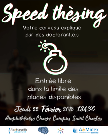 Chacun d’entre eux présentera en un temps record son sujet de thèse afin de s’entraîner devant un public et un jury. C’est un exercice à la fois périlleux et instructif ! C’est l’occasion de découvrir les neurosciences, le monde de la recherche, d'avoir un aperçu de ce qui vous attendra dans quelques années si vous souhaitez faire le même parcours.