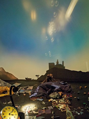 Se présentant lui-même comme « brico-luminologue », Flop (Philippe Lefèvre, co-fondateur du groupe ZUR) ne cesse d’explorer l’infinie puissance poétique de la lumière et du mouvement que ce soit à travers des spectacles ou dans des installations. Sur un rail, deux ampoules, dans une valise. Ombres, reflets, couleurs et transparences s’agencent en un grand tableau panoramique en mouvement qui témoigne d’un voyage. Selon la vitesse de la lumière, nous passons de l’abstraction à la contemplation d’un paysage éphémère défilant sous nos yeux. Au fur et à mesure des allers-retours, un récit prendre forme dans lequel s’esquisse peu à peu le portrait des propriétaires de cette valise. Avec Travel-lllling, la vitesse nous rappelle la nécessité de ralentir pour pouvoir découvrir la magie des petites choses du quotidien.