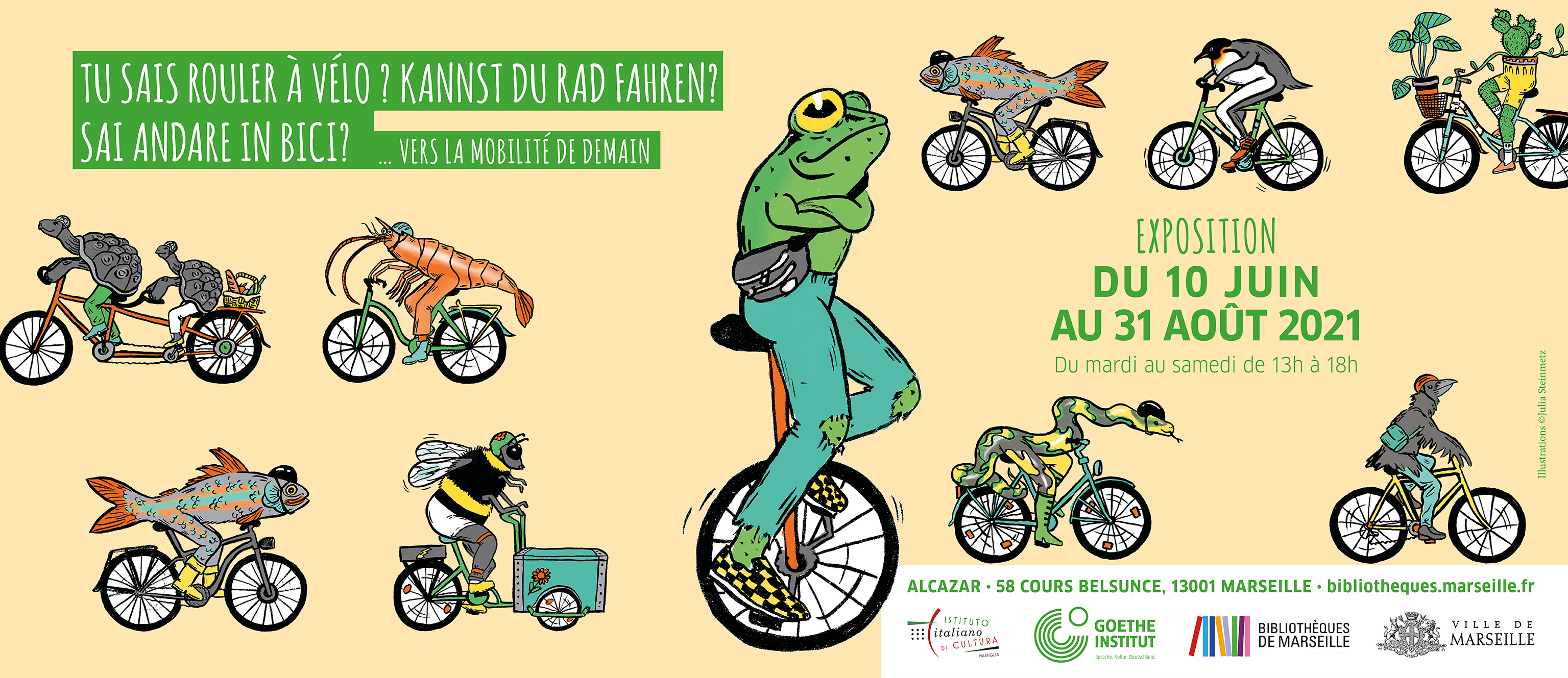 Cette exposition, initiée par le Goethe-Institut en Italie et la Fondazione Idis – Città della Scienza, rassemble une séléction des meilleures affiches créées par de jeunes designers et illustrateur·trice·s en Allemagne et en Italie. Dans le cadre d’un concours autour d’un projet de mobilité durable et d’une vraie révolution du trafic dans les villes, ces jeunes talents ont été invités à livrer leurs idées et leurs réflexions sur l’usage de la petite reine : point de vue personnel ou global, typographie ou illustration, écologie, sécurité…