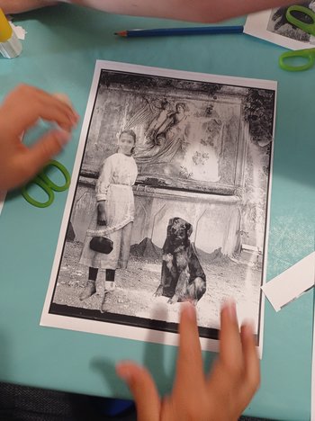 A partir d’une photo de vous prise en début d’atelier, imitez les photographes du début du XXe siècle et créez votre portrait grâce au découpage et au collage.