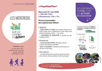 - Venez EXPLORER et OSER de nouvelles postures en sortie nature, pour (re)découvrir le lien intime des publics (scolaires, loisirs…) au vivant.
