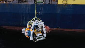 IIlustration : Mise à l'eau de BathyBot depuis le navire océanographique Pourquoi Pas ? Février 2022 - Crédit photo : Nicolas Fromont