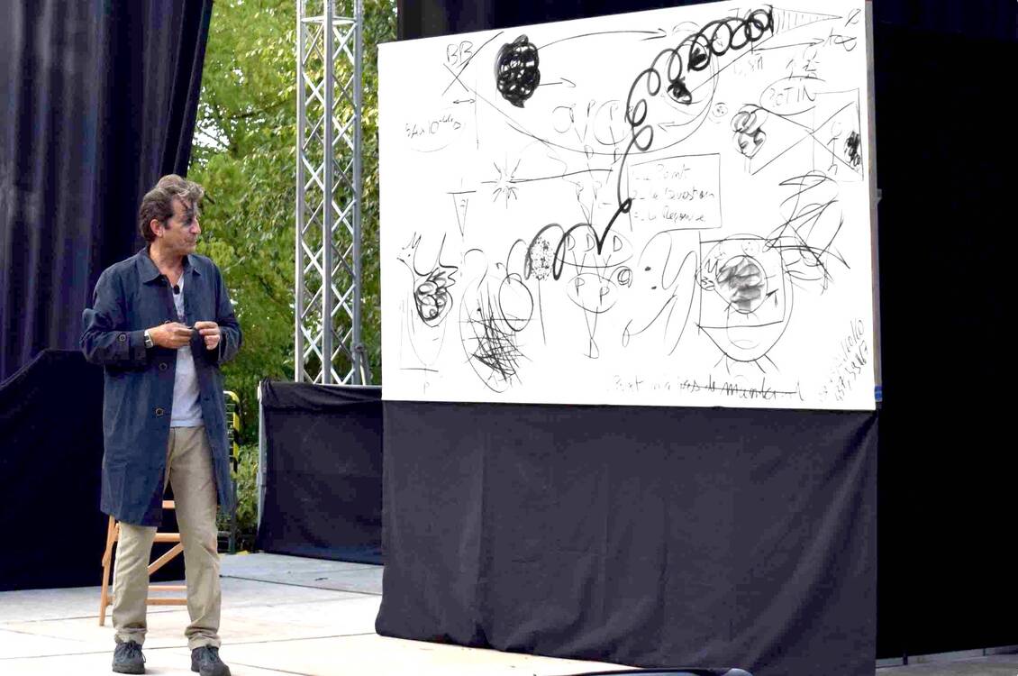 Cette conférence spectaculaire n’a nulle prétention didactique et s’adresse aux esprits les moins rationnels comme aux plus carrés. C'est une invitation au voyage, dans la tête d'un rêveur qui cherche à comprendre le monde, sans savoir, ou presque, mais dans une démarche scientifique, ou presque. Il joue avec les postulats, jongle avec des mots, fait circuler du sens de manière incontrôlée, pousse jusqu'à l'absurde des théories, toujours à la frontière entre "vrai" savoir et élucubrations poétiques.