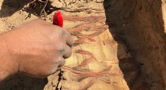 Médiation sur l'origine des tissus : le participant se met dans la peau d’un archéologue et analyse le tissu présenté Une phase de description...