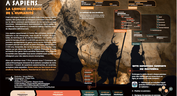 Cette exposition richement illustrée, pédagogique et interactive raconte la naissance et l’évolution de notre espèce, Homo sapiens, et de toute la...